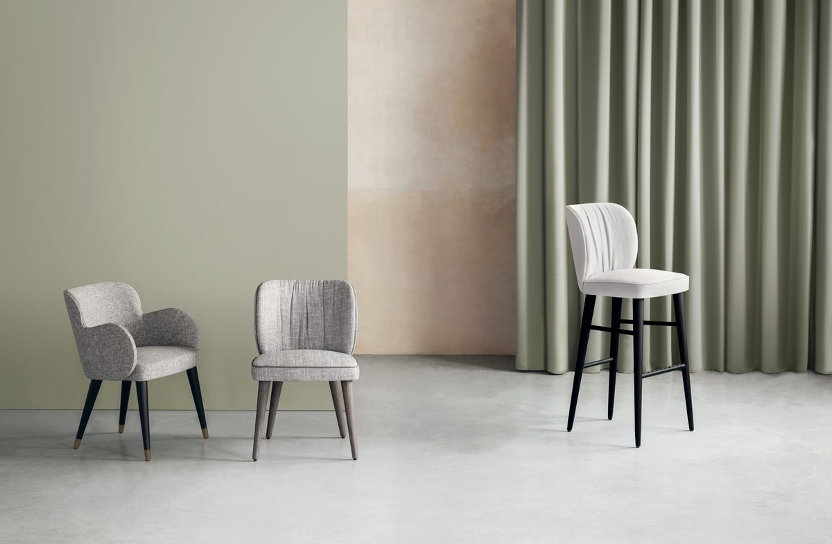 Tiffany est une collection de sièges caractérisée par des lignes enveloppantes qui dégagent le luxe et l'élégance. L'attention méticuleuse aux détails et le choix des matériaux de construction, ainsi que le dos unique qui introduit un élément de mouvement inattendu, améliore sa flexibilité et son attrait contemporain pour satisfaire diverses préférences esthétiques. La version avec des jambes métalliques se transforme en un siège encore plus raffiné et proportionné.