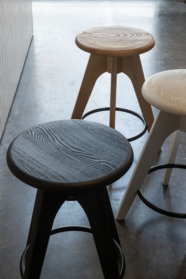 Disponibles en trois hauteurs différentes, les tabourets Tommy forment une famille qui peut être utilisée pour créer différentes compositions, jouant également avec différentes tailles et finitions, ou trouvant des utilisations uniques dans une infinité de pièces, à la maison ou dans des intérieurs contractuels. Les tabourets Tommy sont en hêtre naturel avec une finition légèrement brossée ou une finition laquée à pores ouverts de différentes couleurs. Également disponible en chêne. L'anneau de repose-pieds de la version haute est en métal peint gris ou noir.