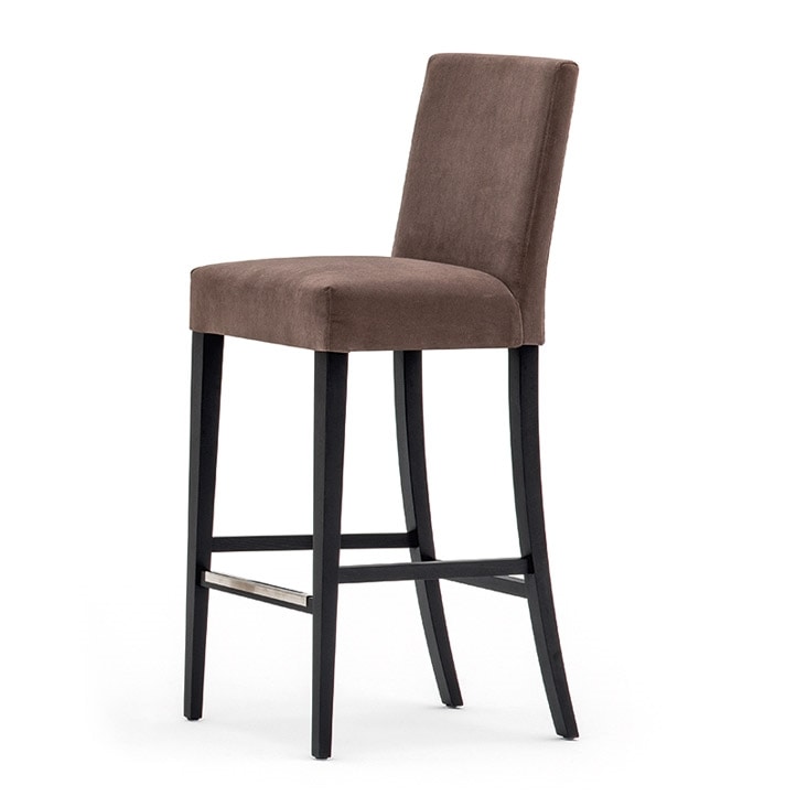 Tabouret de bar en bois massif, assise et dossier rembourrés, revêtement en tissu, repose-pieds en acier, pour l'usage de contrat