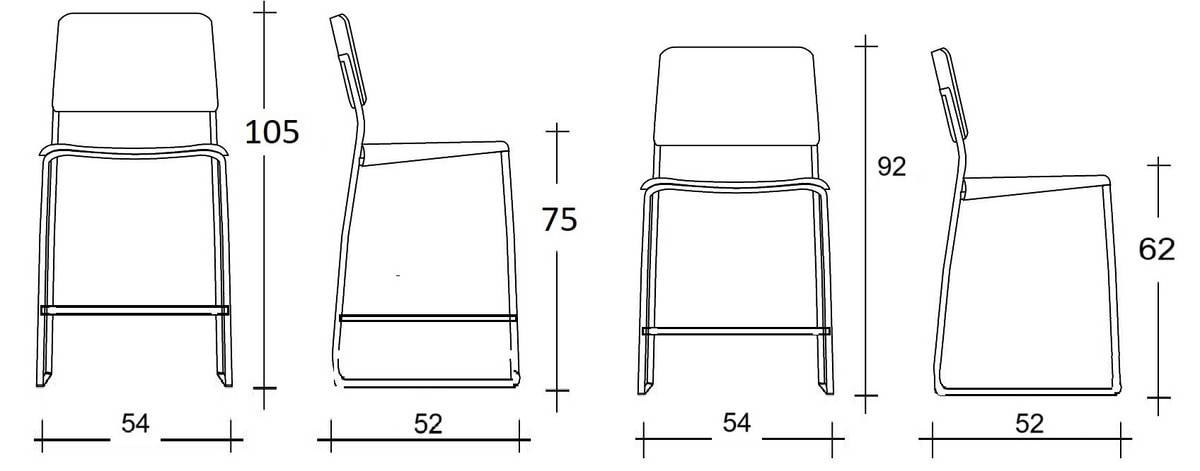 - Modèle H2 avec hauteur d'assise à 620 mm du sol.
