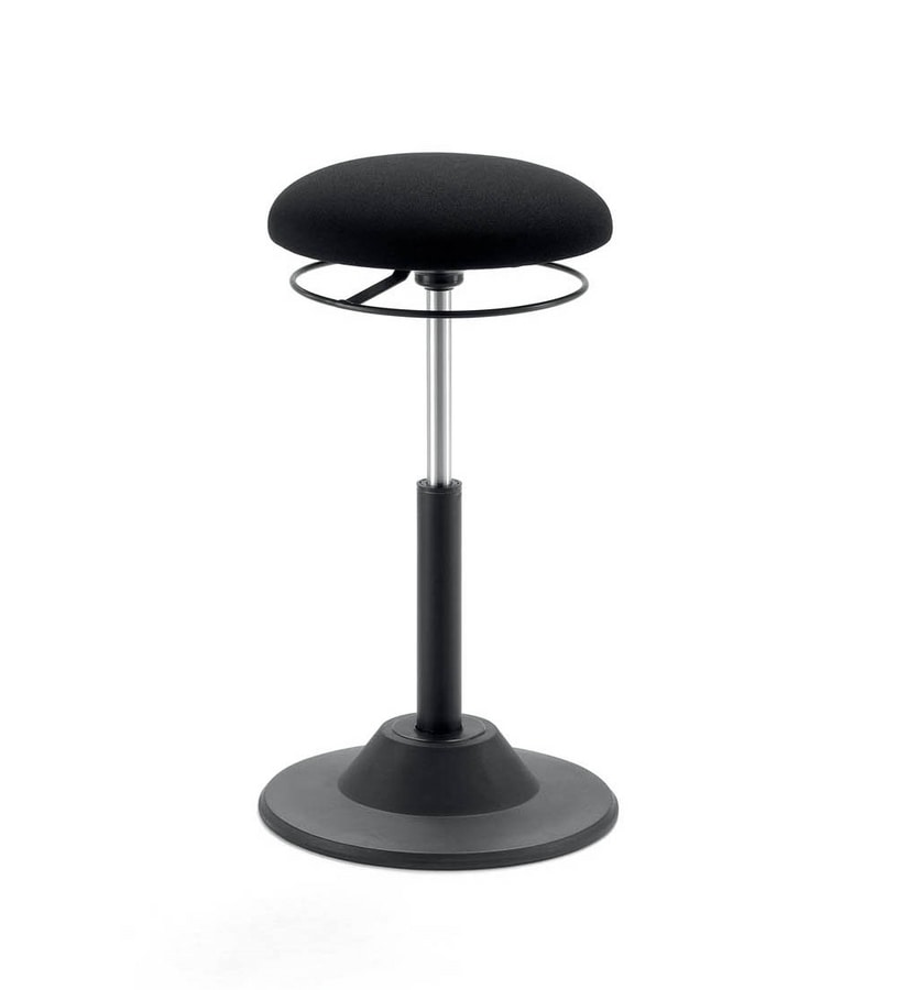 Tabouret. Base en acier peint en noir avec traitement anti-rayures. Ascenseur à gaz avec système d'inclinaison à 360 °. Siège intérieur en contreplaqué avec mousse de polyuréthane. Revêtement en tissu noir.