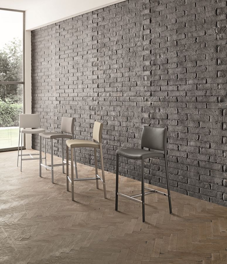 Tabouret fixe avec structure en fer peint peint et assise rembourrée en Soft-Touch Vintage.