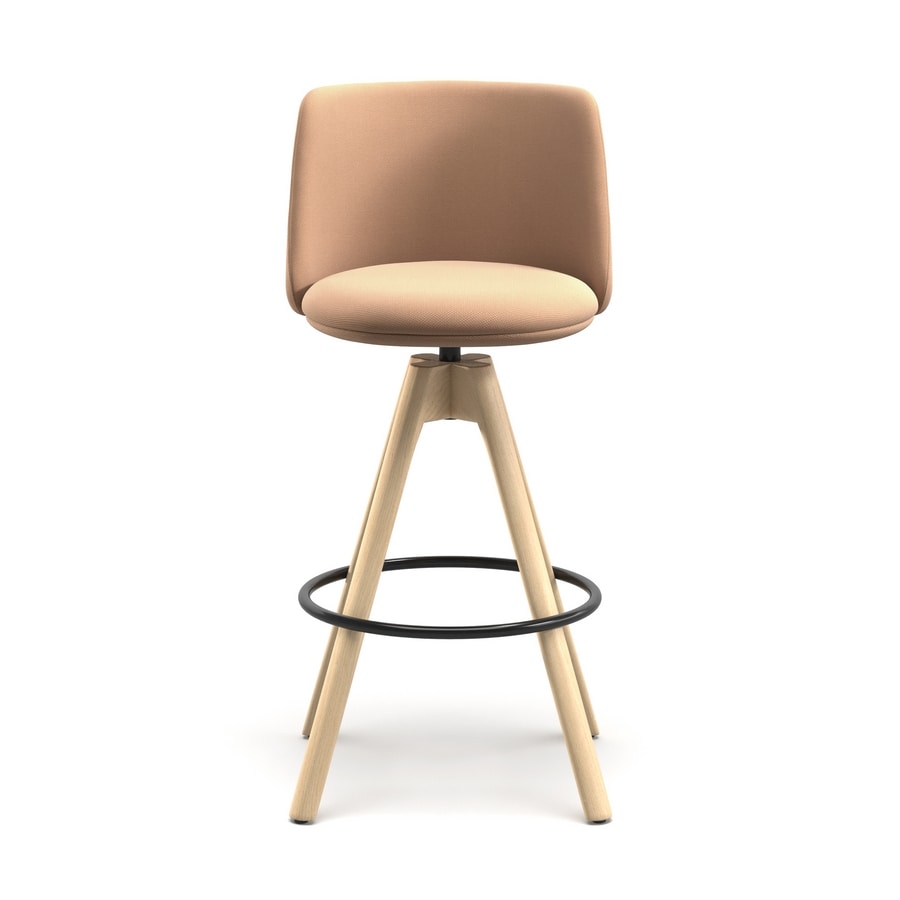 Tabouret pivotant avec structure à 4 pieds en frêne massif et repose-pieds en acier peint en noir, assise et dossier en contreplaqué de hêtre avec mousse de polyuréthane ignifuge, revêtus de tissu.