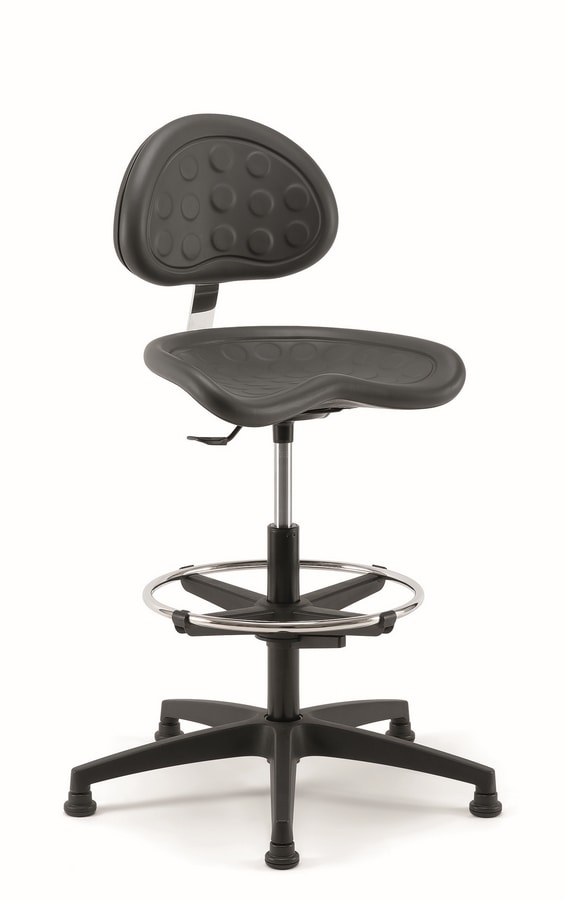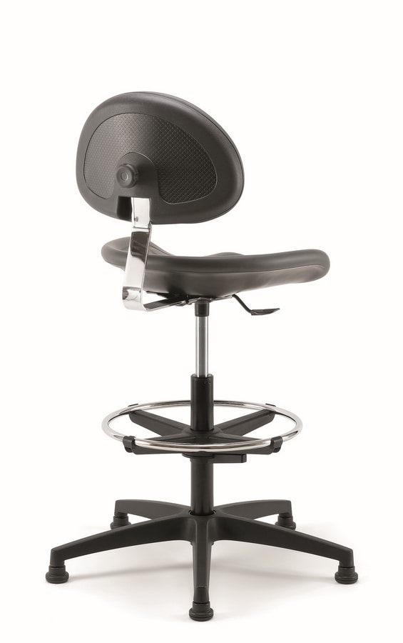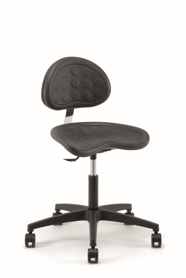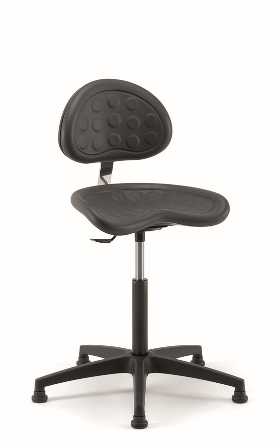 Dossier: Mousse co-injectée avec revêtement en PVC, intérieur et arrière du dossier en polypropylène.