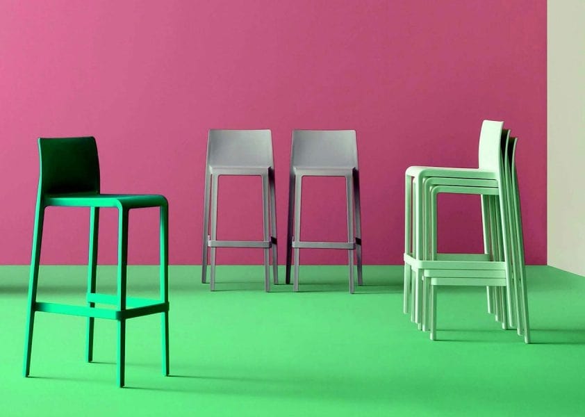 Tabouret empilable en polypropylène. Disponible en différentes couleurs.