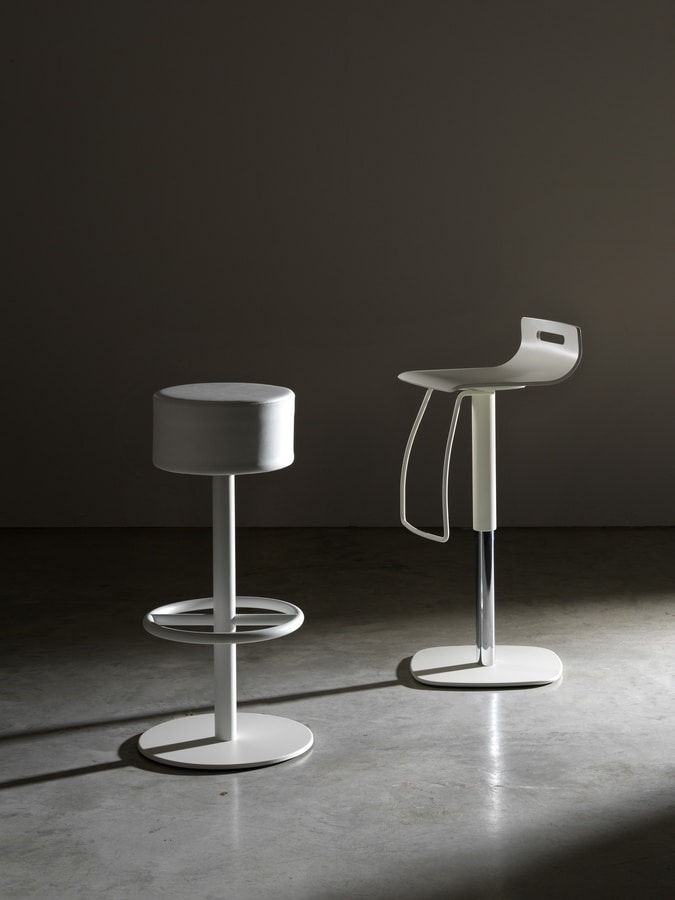 Des lignes dynamiques, une esthétique futuriste, font du tabouret Galaxy un produit captivant, équipé d’un repose-pieds pouvant être assorti au siège rembourré Hill et recouvert d’un cuir synthétique doux.