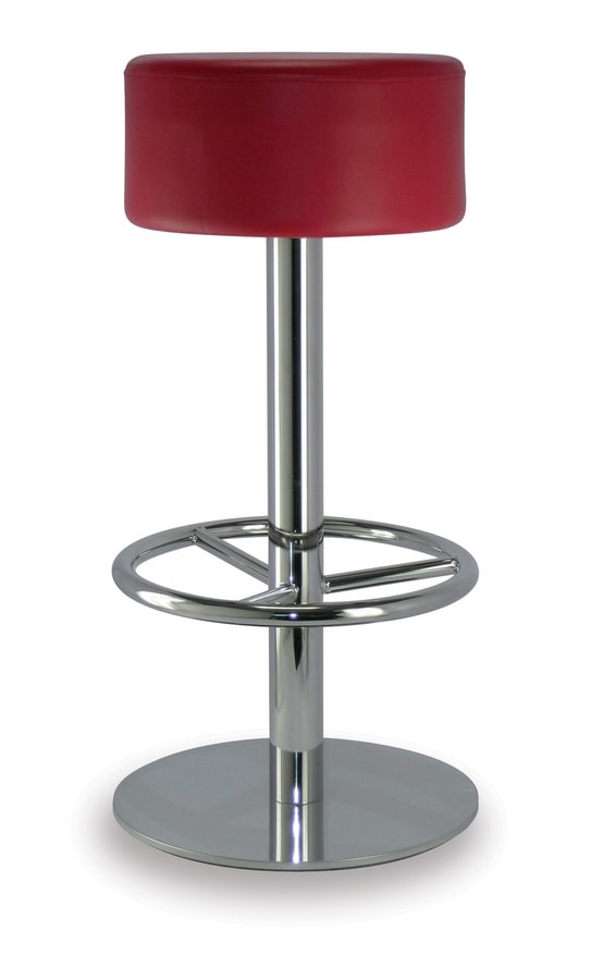 Demander prix Produits similairesTabouret de bar avec base et repose-pieds en métal. Siège rond rembourré. Sans dossier. Revêtement en similicuir.