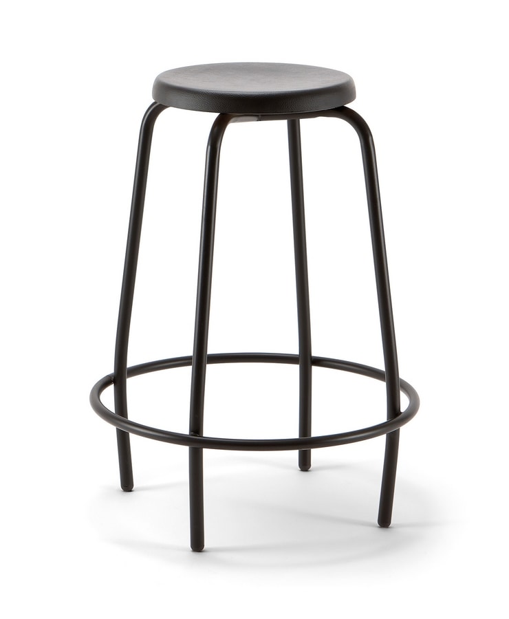 Piètement 4 pieds: Tube d’acier finition noire avec assise fixe ou réglable en hauteur.