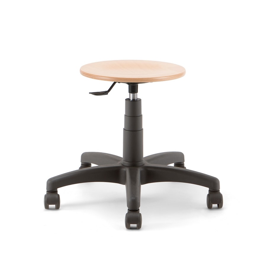 Tabouret à roulettes, assise en bois ronde