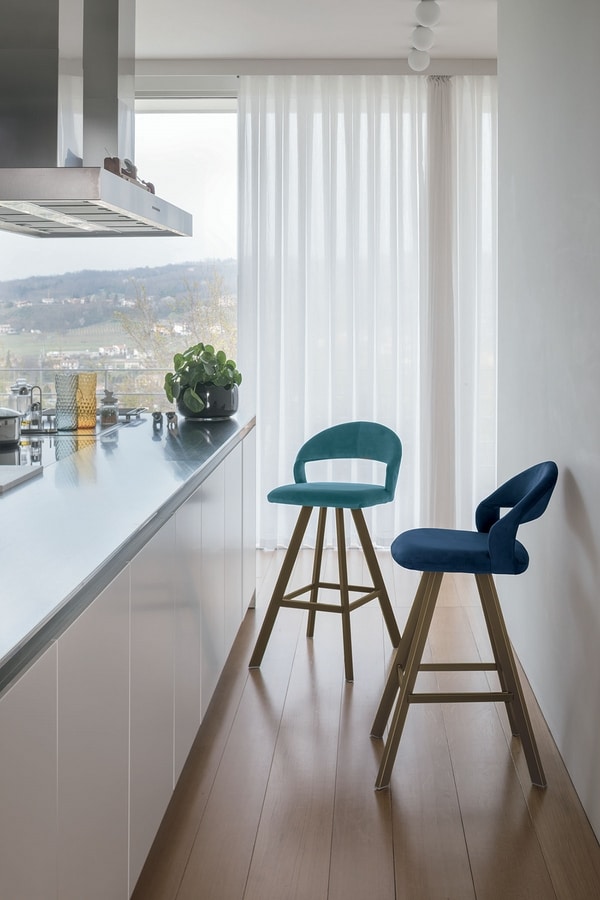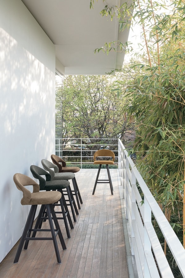 Tabouret avec structure en fer peint et assise en Soft-Touch Vintage ou en microfi bre effet velours.