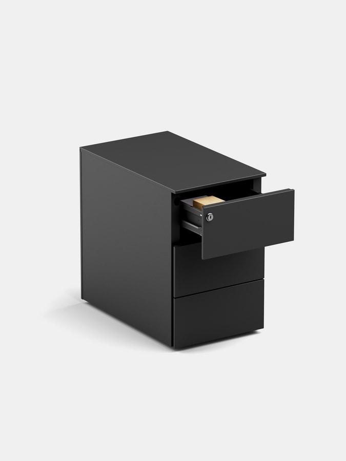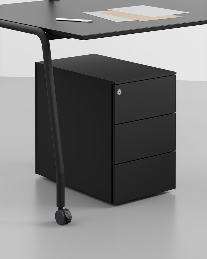 Demander prix Produits similairesKai est le caisson à tiroirs sur roulettes d’IBEBI qui allie esthétique élégante et fonctionnalité, et représente ainsi une solution idéale pour tout espace professionnel. Conçu pour s’intégrer parfaitement au bureau Boss, Kai répond aux besoins d’organisation et de sécurité des espaces de travail modernes. Entièrement réalisé en métal, le caisson Kai dispose de trois tiroirs équipés d’une poignée pratique pour faciliter leur ouverture et leur fermeture. Grâce à ses roulettes, Kai peut être facilement positionné sous le bureau, dans les espaces publics ou dédiés, ce qui permet d’optimiser l’espace. La serrure de sécurité intégrée permet de ranger les documents et les objets personnels en toute sécurité. Kai exprime pleinement la philosophie d’IBEBI qui consiste à créer des meubles polyvalents et flexibles et s’adapte aux besoins actuels des bureaux : reconfigurer facilement les espaces et contribuer ainsi à l’amélioration de la qualité des espaces de travail.