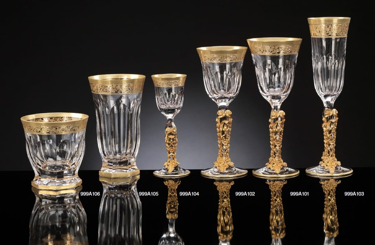 Ensemble de gobelets en cristal avec décoration en or 24 kt