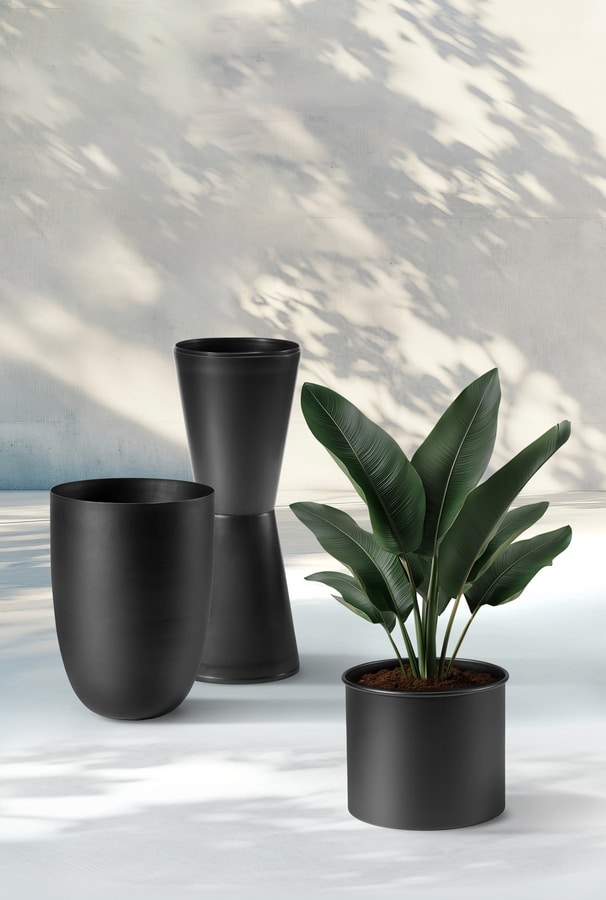 Le vase Zoè est un meuble à l'esthétique singulière. Réalisé en technopolymère, il présente un design moderne qui joue avec les proportions, se rétrécissant au centre et s'élargissant au sommet, créant ainsi un effet dynamique. Parfait pour l'intérieur et l'extérieur, il apporte une touche contemporaine aux espaces.