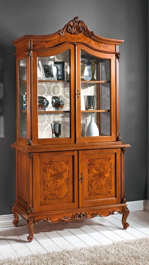 Vitrine à deux portes, de style victorien, en bois sculpté.