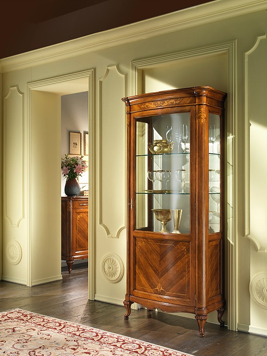 Vitrine en noyer, avec 1 porte et poignée en laiton