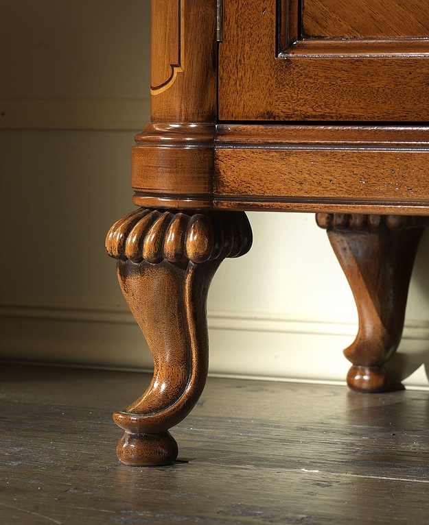 Esthétique, le style et une recherche approfondie des décorations marquetés et placages fins donnent vie à cette collection. Noyer, avec des décorations en érable, le tout renforcé par l'importance du processus de finition.