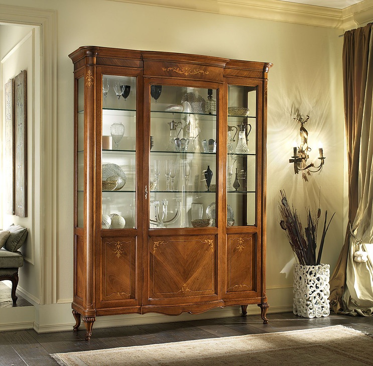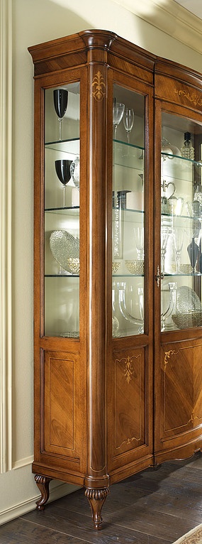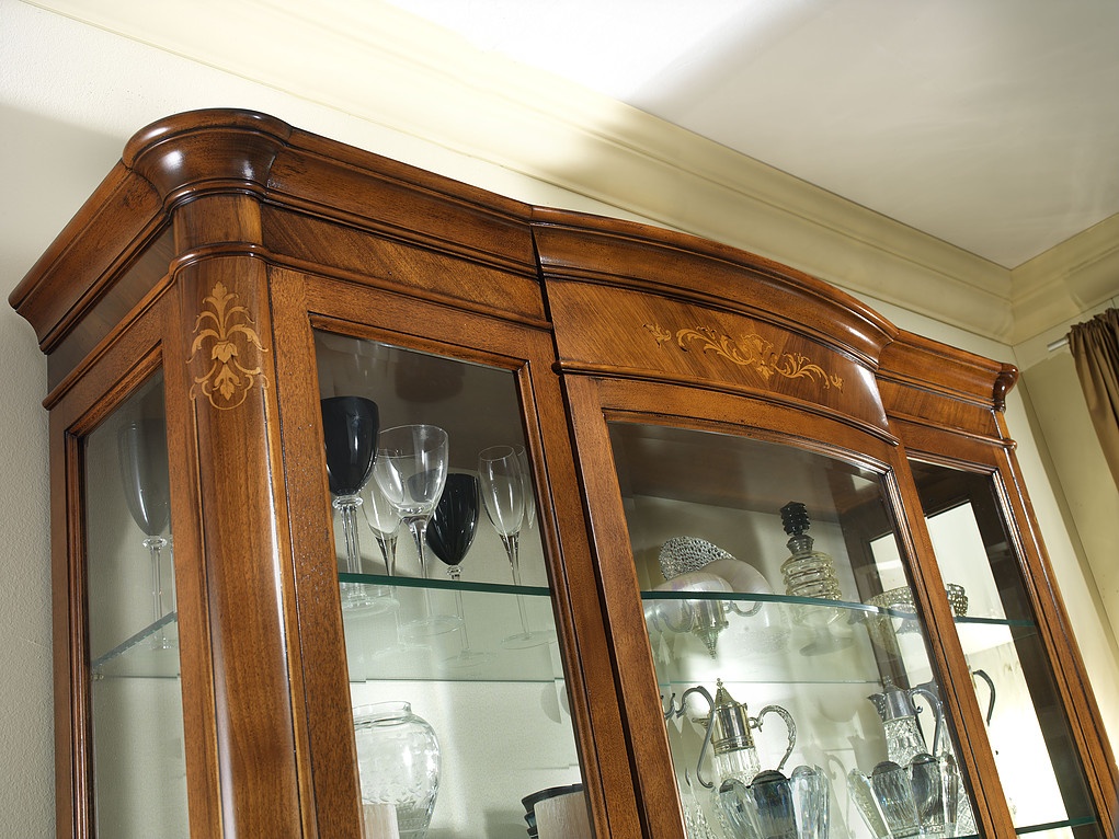 Vitrine classique en noyer, nuances concentrées, incrustés