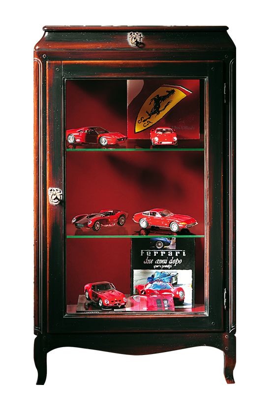 Noyer vitrine avec une porte et un tiroir, étagères en cristal, dans le style de luxe classique