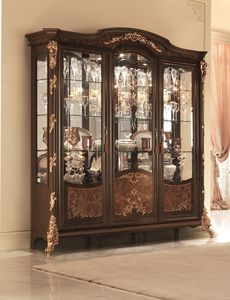 Vitrine classique avec 3 portes et 3 tiroirs, avec chapeau incurvée