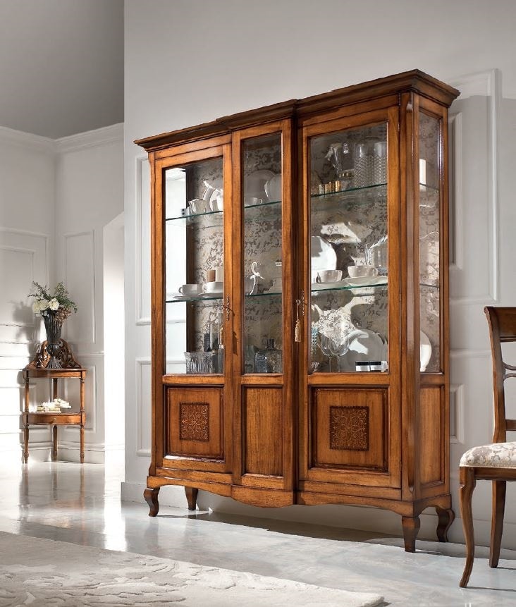 Vitrine classique à 2 portes avec incrustation décorative. Étagères en verre internes.