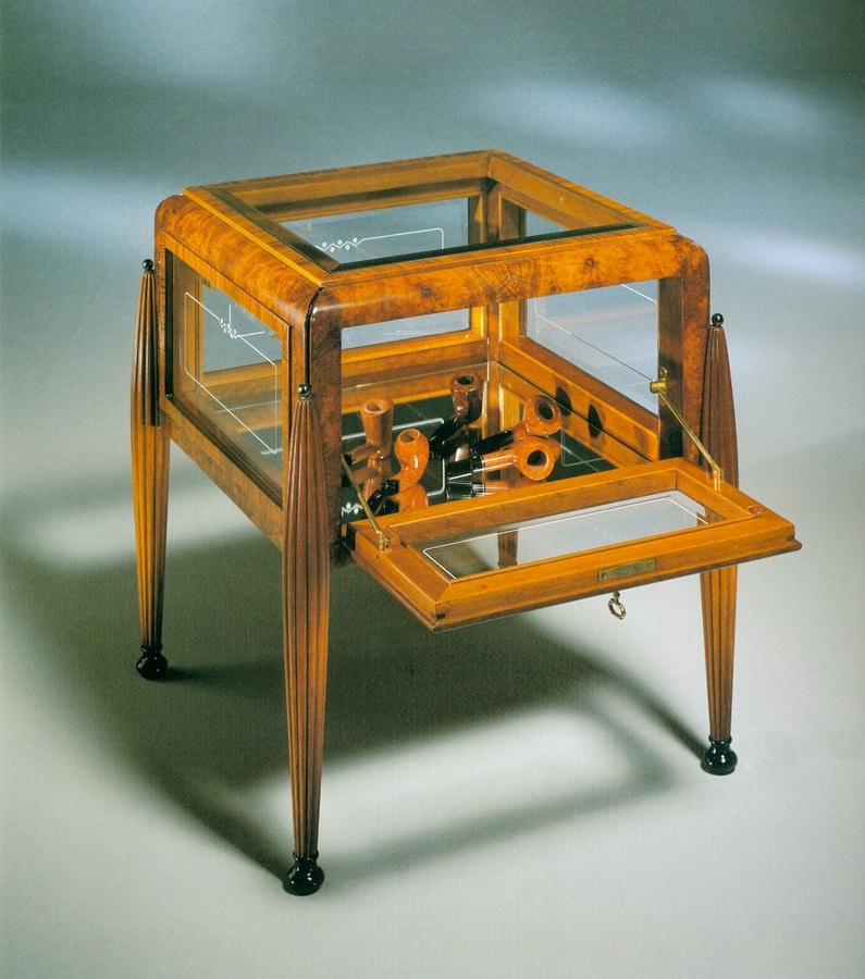 Pièces originales en loupe d'olive avec détails en ébène et zebrano. Les cristaux broyés, finement décorés, reproduisent les thèmes caractéristiques de Deco.