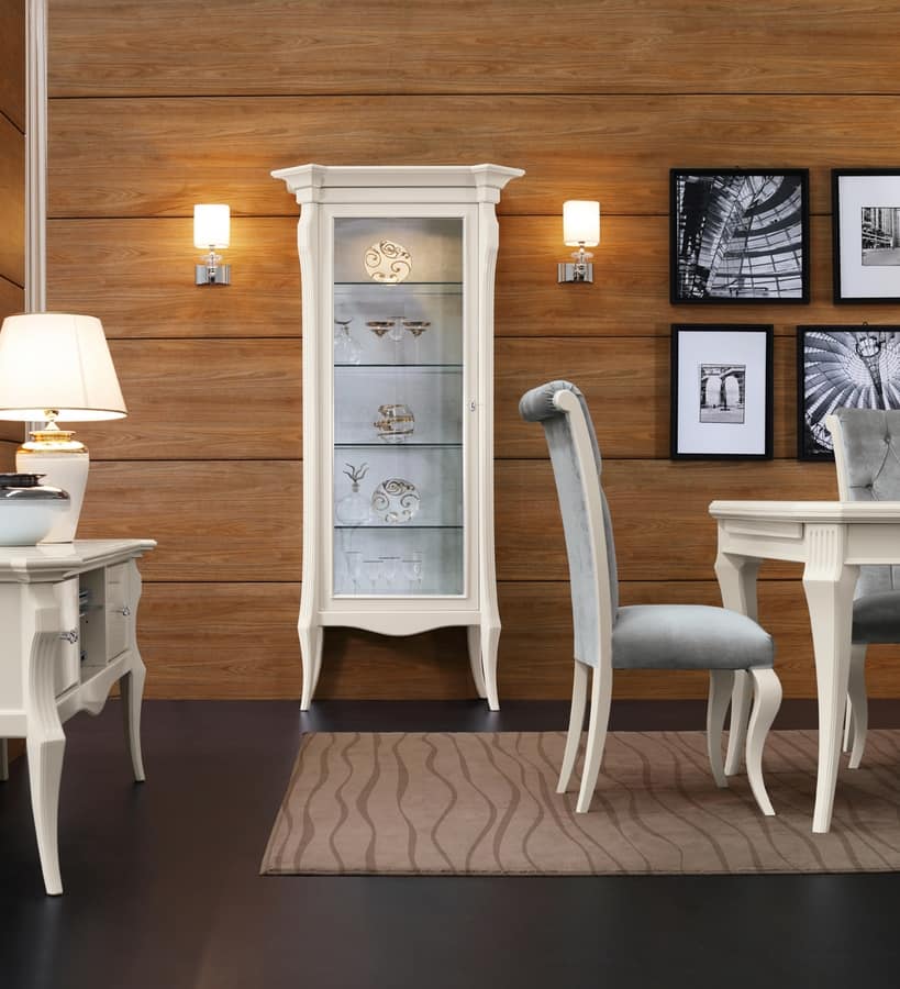Vitrine laquée blanche au design contemporain. Des lignes douces et glamour, pour une esthétique en parfait équilibre entre le passé et le présent. Fait sur mesure et avec différentes finitions.