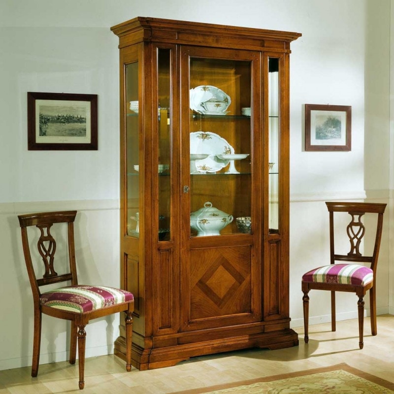 Vitrine avec une porte marquetée en losange